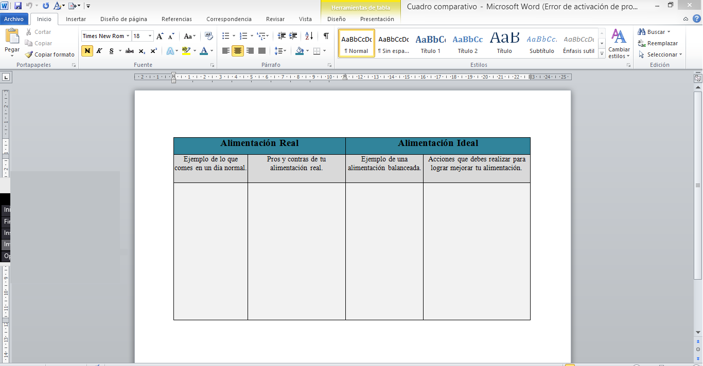 2. Descarga el siguiente cuadro comparativo y nómbralo de la siguiente forma: ApellidosNombre-Alimentación-grupo, por ejemplo, LopezCortesJuan-Alimentación-510. 3. Sigue las instrucciones sobre lo que se pide en la actividad: